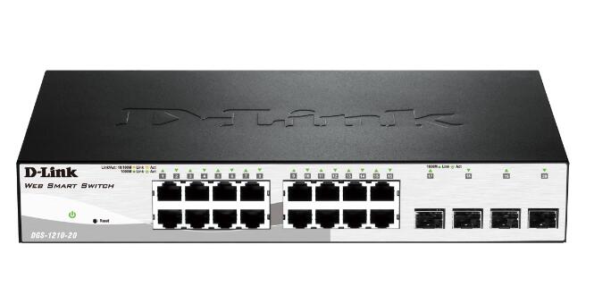 D-Link 千兆交換機DGS-1210-20擁有16個千兆電口和4個SFP光口,交換容量256G,包轉發速率29.8Mpps,具有二層特性的網絡管理功能。
