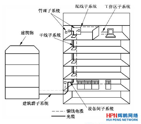 綜合布線系統的組成,可以分為6個子系統,即建筑群子系統、干線(垂直)子系統、配線(水平)子系統、管理子系統、設備間子系統和工作區子系統,F分別介紹如下。