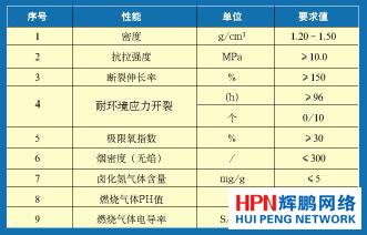 表1 無鹵阻燃護套的主要性能指標