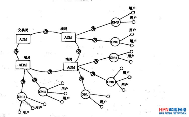 由SDH設備組成的環型網+ONU組成的星型網結構。業務經過SDH環傳輸后,再經ONU組成的星型網分配到各個用戶。如果某些甩戶需要的帶寬很