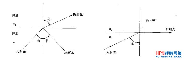 根據光的反射定律,反射角等于入射角;根據光的折射定律,其中,纖芯的折射率;為包層的折射率。 顯然,若纖芯的折射率,>包層的折射率,比值增大到一定程度,就會使折射角Q>90。,此時的折射光線不再進入包層,而會在纖芯與包層的分界面上掠過時,或者重返回到纖芯中進行傳播(以>90。時)。這種現象叫做光的全反射現象,人們把對應于折射角島90的入射角叫做臨界角(0),可以很容易得到臨界角。