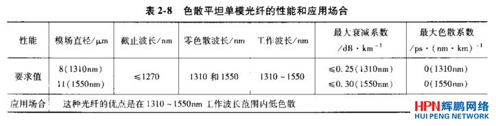 1988年,色散平坦單模光纖商用化。這種光纖在1310~l 550nm,波段范圍內都是低色散,且具有兩個零色散波長,即1310nm和1550nm。這種光纖可用中心波長更寬的激光器和T作波長在1310nm和1550nm·的標準激光器與LED進行高速傳輸。但是,色散平坦單模光纖折射率剖面結構復雜,制造難度大,尤其是該光纖的衰減大,離實用距離很遠。色散平坦單模光纖的性能和應用場合見表: