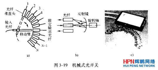微機電系統光開關可分為移動光纖式光開關、移動套管式光開關和移動透鏡(包括反射鏡、棱鏡和自聚焦透鏡)式光開關。表示l×Ⅳ移動光纖式光開關,它用電磁鐵驅動活動臂移動,切換到不同的固定臂光纖一圖3 19b表示1×2移動反射鏡式光開關。